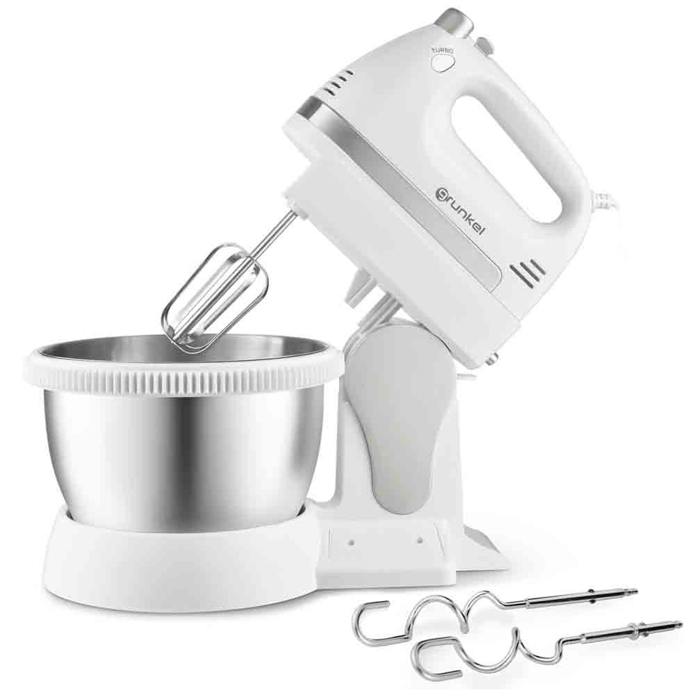 Accesorios incluidos: Viene con una mezcladora y ganchos para masas, brindándote versatilidad en la preparación de diferentes recetas.